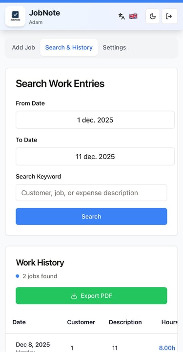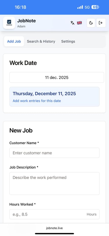JobNote is a simple work log for tradespeople.